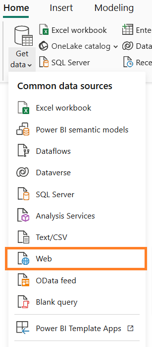 Setelah kita mendapatkan alamat web sebagai sumber datanya, sekarang kita klik menu Get Data → Web.
